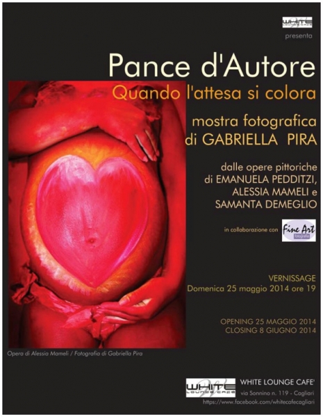 Domenica 25 maggio alle 19, negli spazi del White Lounge Café –,sito in via Sonnino n. 119 a Cagliari ,inaugura l'esposizione fotografica dell'artista Gabriella Pira dal titolo Pance d'Autore – Quando l'attesa si colora.