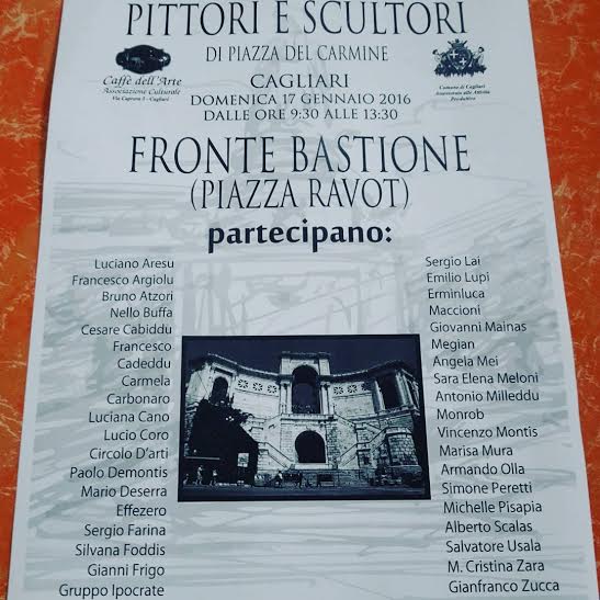 Appuntamento con l'arte figurativa e stratta domenica 17 gennaio 2016: i pittori e gli scultori sardi rinnovano la ormai consolidata manifestazione. La mattinata avrà come teatro d'eccellenza la bellissima piazza Ravot, di fronte al Bastione di Saint Remy. La manifestazione prenderà il via alle 9.30 e proseguirà fino alle 13.30.
