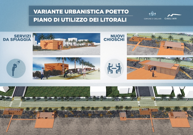Questa mattina il sindaco Massimo Zedda insieme all'assessore dei Lavori Pubblici hanno definito i prossimi passi per la riqualificazione del lungomaro Poetto. La Regione ha acconsentito al progetto del litorale cagliaritano: diversa localizzazione dei chioschetti, che resteranno aperti tutto l'anno, saranno più grandi e confortevoli e finalmente fissi.Il tratto sarà reso totalmente pedonale eccetto per i residenti e grazie a un ecofiltro la sabbia verrà trattenuta e protetta, consentendo la rinascita delle dune di qualche decennio fa.