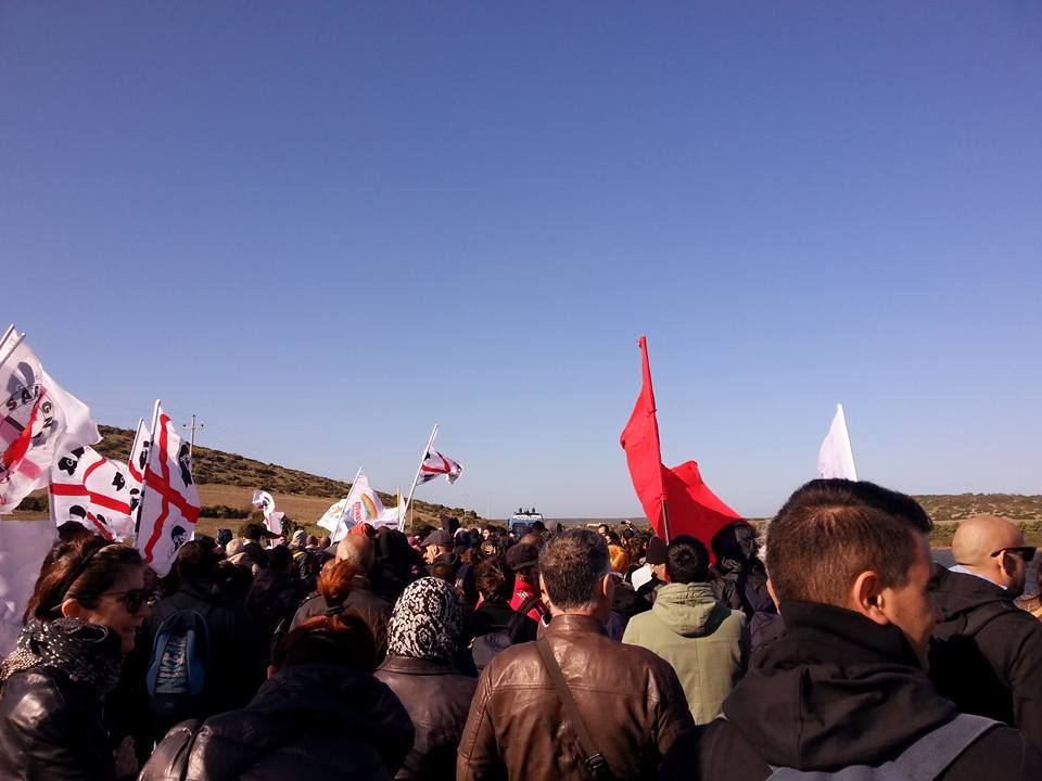 La manifestazione – alla quale hanno preso parte altri gruppi indipendentisti e numerosi studenti confluiti dai quattro angoli della Sardegna – ha avuto inizio alle 10:30 con il ritrovo dei partecipanti a Marceddì. Intorno a mezzogiorno il corteo si è incamminato sulla statale per raggiungere il Poligono dell’Aeronautica Militare. Un migliaio di persone hanno marciato in direzione della base al grido di “Andiamo a riprenderci Capo Frasca”.