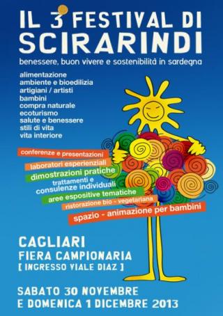 Comincia sabato 30 novembre e termina domenica 1 dicembre la terza edizione del Festival dedicato al Benessere, al Buon Vivere e alla Sostenibilità in Sardegna. Tanti appuntamenti ed eventi per tutta la famiglia. Ingresso dalle ore 10 alle 22.Scirarindi, "svegliati", nasce dall'incontro di due donne,solo una di origine sarda, che amanti del benessere e del vivere sano hanno deciso di diffonderlo e promuoverlo anche in Sardegna, dove a loro dire, l'informazione a riguardo era ancora insufficiente. Programmazione dei due giorni : SABATO 30 NOVEMBRE