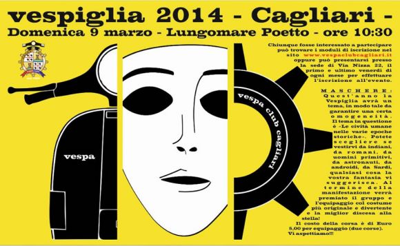 Si è tenuta questa mattina la settima edizione della Vespiglia, la Sartiglia organizzata dal Vespa Club di Cagliari. Tutto il lungomare Poetto è stato trasformato in un percorso in cui i "cavalieri" delle vespe dovevano prendere la famosissima stella, proprio come quella della Sartiglia oristanese. Tanti personaggi e qualche parodia, tutti rigorosamente in maschera per salutare il carnevale 2014.