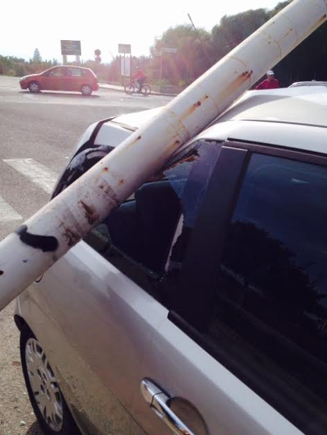 Tragedia sfiorata questo pomeriggio in via Is Arenas a Quartu, davanti all'ingresso del parco di Molentargius: erano passate da poco le 15.30 quando un palo dell'illuminazione pubblica si è abbattuto contro un'auto in sosta ingombrando l'intera carreggiata. Per fortuna in quel monento non transitavano auto e così un'utilitaria, una Lancia Y parcheggiata al lato destro della strada, ha "parato" la caduta finendo completamente schiacciata.