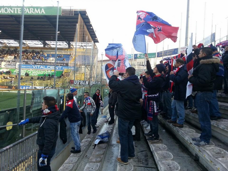 Nel freddo pomeriggio parmense, si accende la curva del Tardini. All’ingresso in campo delle squadre viene srotolato il grande striscione che celebra il centenario del Parma. È una data storica per i gialloblù, che per l’occasione indossano la vecchia-nuova maglia del 1913, oggi non più in lana ma in poliestere.